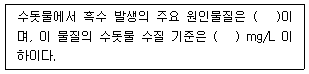 16. 수돗물에서 흑수 발생에 관한 설명으로 ( )에 들어갈 내용을 순서대로 나열한 것은?