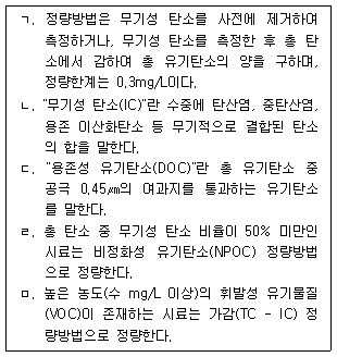 27. 수질오염공정시험기준상 총 유기탄소-고온연소산화법에 관한 설명으로 옳은 것을 모두 고른 것은?