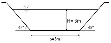 69. 다음 사다리꼴 인공수로의 단면적(A)과 경심(R)은 약 얼마인가?