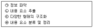 29. 다음 중 정보를 구조화하기 위한 과정을 차례대로 나열한 것으로 올바른 것은?