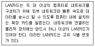 59. 다음 글상자에서 설명하고 있는 LAN카드 고유식별 번호의 용어로 가장 올바른 것은?