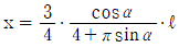21. 트롤어구에 이용되는 길이 ℓ인 평면 전개판이 수중에서 영각 α로 예인될 때 받는 수력저항의 압력 중심 x을 표현한 식은?