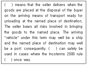14. 다음 Incoterms® 2010 rules에서 위험의 이전이 목적지에서 이루어지는 것은?