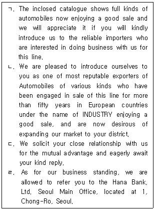 29. 거래처 소개의뢰를 제의하는 무역통신문의 내용을 순서대로 바르게 나열한 것은?