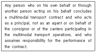 24. 국제물품복합운송에 관한 유엔협약(MT, 1980) 제1조 '정의(Definitions)'이다. 다음의 내용에 해당하는 용어는?