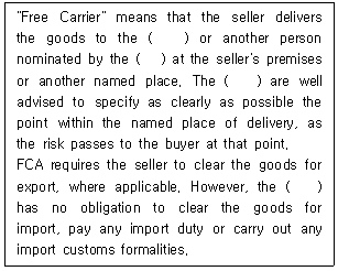27. IncotermsⓇ 2010 FCA 규칙이다. ( )에 들어갈 용어를 순서대로 바르게 나열한 것은?