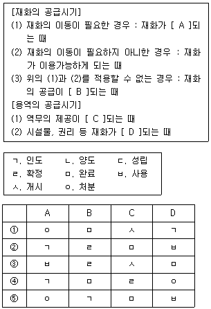 10. 부가가치세법상 재화 및 용역의 공급시기를 옳게 연결한 것은? (단, 할부 또는 조건부 공급이 아님)