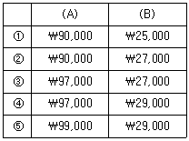 위의 오류사항을 반영하기 전 20×3년 말 이익잉여금은 ₩100,000, 20×3년도 당기순이익은 ₩30,000이었다. 오류를 수정한 후의 20×3년 말 이익잉여금(A)과 20×3년도 당기순이익(B)은 각각 얼마인가? (단, 오류는 중요한 것으로 가정한다.)