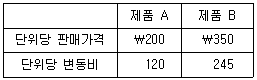 35. (주)관세가 생산하는 제품의 단위당 판매가격과 단위당 변동비에 대한 자료는 다음과 같다.