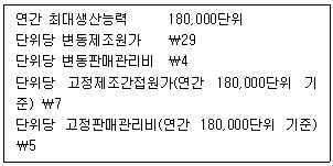 40. (주)관세는 분권화된 사업부 A와 사업부 B를 이익중심점으로 운영하고 있다. 사업부 A에서 생산되는 표준형 밸브는 외부시장에 판매하거나 사업부 B에 대체할 수 있다. 사업부 A는 현재 최대생산능력을 이용하여 생산하는 표준형 밸브 전량을 단위당 판매가격 ₩50으로 외부시장에 판매하고 있고, 생산 및 판매와 관련된 자료는 다음과 같다.