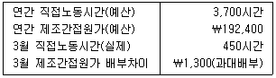 33. (주)관세는 제조간접원가를 직접노동시간에 따라 예정배부한다. 20×1년 예산 및 동년 3월의 자료가 다음과 같을 때 3월의 제조간접원가 실제발생액은?