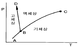 28. 그림은 물의 압력대 온도 도면(p-T diagram)을 나타낸 것이다. 곡선
