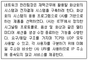 20. 다음은 화상 회의를 하기 위한 기술에 관한 내용이다. ( A ) 안에 들어가는 용어 중 옳은 것은?