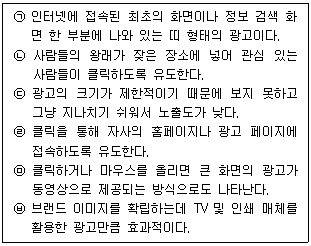 48. 아래 글상자의 온라인 배너광고에 대한 설명 중 옳지 않은 것만을 나열한 것은?