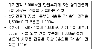 40. 아래 글상자의 자료를 이용하여 용적률을 바르게 계산한 것은? (단, 소수점이하는 생략함)