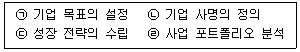 8. 아래 글상자 내용으로 유통경영전략을 수립할 때 그 순서가 가장 옳게 나열된 것은?