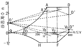 55. 그림은 수송기의 V-n 선도를 나타낸 것이다. 이 그림에서 A와 D의 연결선은 무엇을 나타내는가?