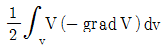 20. 공간전하밀도 ρ[C/m3]를 가진 점의 전압이 V[V], 전계의 세기가 E[V/m]일 때 공간 전체의 전하가 가진 에너지는 몇 [J]인가?