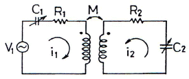 40. 다음과 같은 결합 공진회로에서 C1과 C2를 조정하여 두 폐회로가 모두 공진 상태에 있을 때 결합계수를 변화시킨다면 i2가 최대로 되는 상태는?