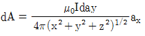 7. 자유공간에 미소전류 Idyay가 원점에 있을 때, 이 미소전류에 의한 점 P(x, y, z)에서 미소 벡터 퍼텐셜(vector potential)은?