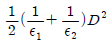 12. 유전율이 εr1, εr2인 (F/m)인 유전체 경계면에 단위면적당 작용하는 힘은 몇 N/m2 인가?(단, 전계가 경계면에 수직인 경우이며, 두 유전체의 전속밀도 D1=D2=D이다.)