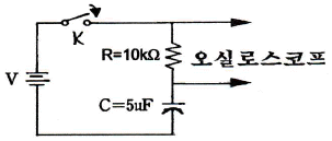 22. 다음과 같은 회로에서 t=0에서 스위치(K)가 닫혔다. 전류의 파형이 오실로스코프에 나타났을 때 전류의 초기값이 10mA로 측정되었을 경우, i(t)의 식으로 옳은 것은?