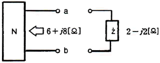 39. 다음의 회로망에서 a, b간의 단자전압이 50V이고 a,b에서 본 임피던스가 6+j8[Ω]이다. a, b 단자에 임피던스 Ż=2-j2[Ω]을 연결하였을 때 흐르는 전류는 몇 A 인가?