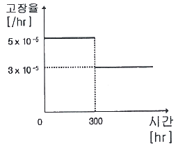 62. 그림과 같은 고장율을 갖는 부품이 400시간 이상 작동할 확률은 약 얼마인가?