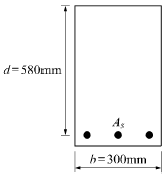 50. 강도설계법에서 그림과 같은 단면을 가지는 단근보의 설계모멘트(øMn)는? (단, fck=27MPa, fy=400MPa, As=2,871mm2)