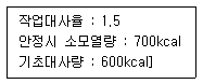 4. 다음 조건을 적용하여 계산된 작업시 소요열량은?