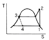 1. 다음 그림과 같은 랭킨 사이클에서 각 점의 엔탈피(kJ/kg)가 각각 i1 = 800, i2 = 350, i3 = 50, i4 = 200이다. 이 사이클의 효율은 얼마인가?