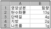 35. 아래의 표는 코코아 분말 20g에 포함되어 있는 영양성분을 표시한 것으로, 각 영양성분별로 구성비율을 표시하기 위한 차트로 적합한 것은?