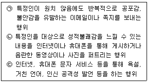 1. 다음 글상자에서 설명하고 있는 사이버폭력의 유형이 가장 올바르게 연결된 것은?