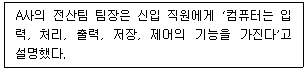 57. 다음 글상자에서 설명하고 있는 컴퓨터의 구성요소로 가장 올바르지 않은 것은?