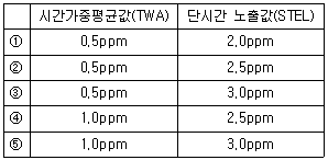 70. 화학물질 급성 중독으로 인한 건강영향을 예방하기 위한 노출기준만으로 옳은 것은?
