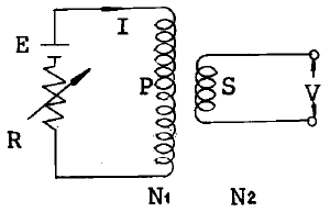 50. 다음 그림에서 상호 인덕턴스가 0.5[H]일 때, 코일 P의 전류를 0.5[sec] 사이에 10[A] 변화시키면, 코일 S에 유도되는 기전력은 얼마인가?