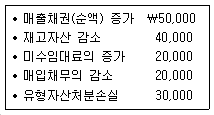 71. (주)한국의 영업활동으로 인한 현금흐름이 ₩500,000일 때, 다음 자료를 기초로 당기순이익을 계산하면?