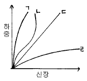 8. 다음 강신도 곡선(Stress - strain curve)에서 가장 신도가 큰 섬유의 곡선은?