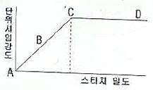 72. 다음 스티치 밀도에 따른 시임강도의 변화를 나타낸 그래프에서 가장 바람직한 스티치 밀도를 가리키는 곳은?