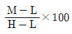 69. GATF 표색계에서 색상오차(Hue Error)를 나타낸 식은? (단, H, M, L 은 3가지의 필터에 의해 판정된 농도치 중에서 최대치, 중간치, 최소치를 각각 의미한다.)