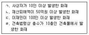 20. 소방기본법령상 특별시ㆍ광역시 또는 도의 소방본부에 설치된 종합상황실의 실장이 소방방재청의 종합상황실에 서면ㆍ모사전송 또는 컴퓨터통신 등으로 지체 없이 보고하여야 하는 상황에 해당하는 것을 모두 고른 것은?