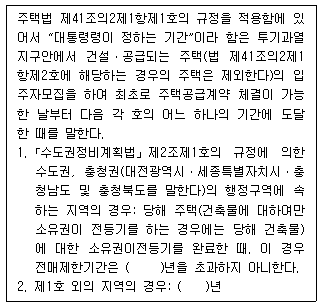 62. 전매행위 제한기간에 관한 주택법 시행령 제45조의2의 일부 내용이다. ( )안에 들어갈 숫자를 순서대로 각각 쓰시오.