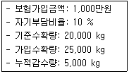 50. 농업재해보험 손해평가요령에 따른 적과전종합위험방식 「과실손해보장」에서 “사과”의 경우 다음 조건으로 산정한 보험금은?