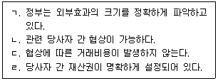 76. 코즈(R. Coase)정리가 성립하기 위한 조건으로 옳지 않은 것을 모두 고른 것은?