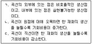 77. 생산가능곡선에 관한 설명으로 옳은 것을 모두 고른 것은?