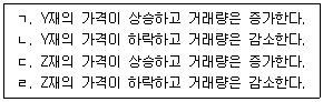 71. X재와 Y재는 서로 대체재이고 X재와 Z재는 서로 보완재이다. X재의 가격이 상승할 때 균형의 변화에 관한 설명으로 옳은 것을 모두 고른 것은? (단, Y재와 Z재의 수요곡선은 우하향하고 공급곡선은 우상향하며 다른 조건은 일정하다)