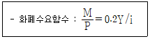 56. 화폐수요함수가 아래와 같이 주어진 경제에서 명목 GDP가 1,000이고 명목이자율(i)이 0.04일 때, 화폐의 유통속도는? (단, M은 통화량, P는 물가, Y는 실질 GDP)