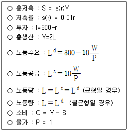 47. 아래의 거시경제모형의 균형에서 균형임금보다 5를 증가시킨 임금 수준의 최저임금제를 도입할 경우, 거시경제 변수의 변화에 관한 설명으로 옳은 것은? (단, Y는 총생산, r은 실질이자율, W는 명목임금)