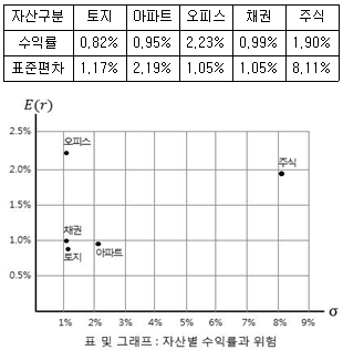 102. 다음은 일정기간 부동산자산과 금융자산의 투자 자료이다. 이 경우 합리적인 투자자가 가장 선호할 자산은? (단, 주어진 자료에 한함)