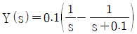 68. 교반탱크에 100L의 물이 들어있고 여기에 10%의 소금용액이 5L/min로 공급되며 혼합액이 같은 유속으로 배출될 때 이 탱크의 소금농도식의 Laplace 변환은?